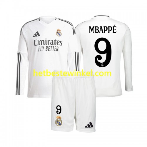Real Madrid Kylian Mbappé 9 Voetbalshirts Kind Thuis 2024-25 - LS
